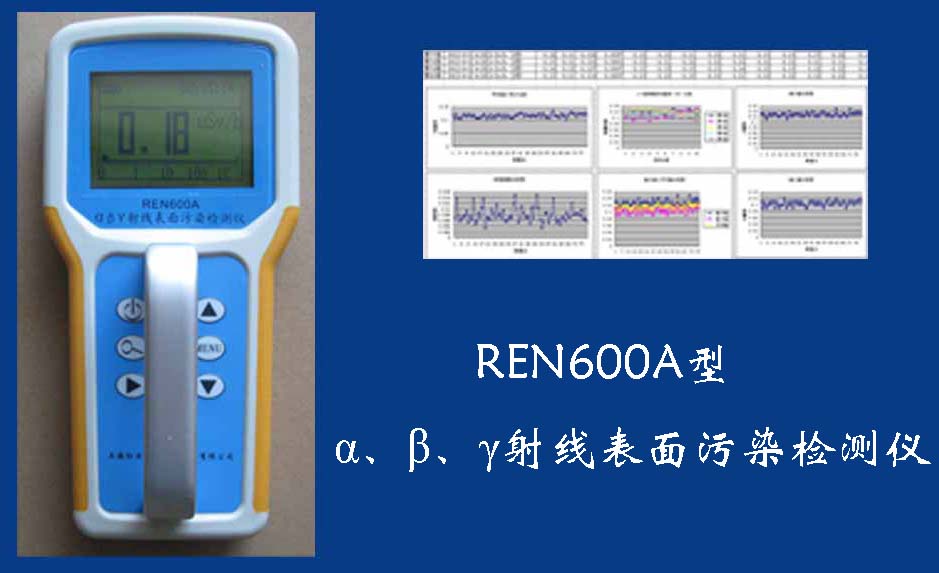 REN600A型α、β、γ射線表面污染檢測儀即可檢測α、β、γ射線,也能檢測到X射線,它采用高速嵌入式微處器作為數(shù)據(jù)處理單元,點(diǎn)陣式大屏幕LCD液晶顯示,讀數(shù)清晰、操作方便,具有400條超大容量數(shù)據(jù)存儲。儀器采用進(jìn)口的大面積MICA蓋革探測器,具有較高探測效率,可進(jìn)行α、β輻射表面污染檢測和X、γ輻射劑量率的監(jiān)測。此外通過配套的RenriCont表面污染管理軟件可將存儲的數(shù)據(jù)讀出后分析。可廣泛用在制藥廠、實(shí)驗(yàn)室、發(fā)電廠、進(jìn)出口商檢、采石場、環(huán)境實(shí)驗(yàn)室、環(huán)境污染調(diào)查、核安全應(yīng)急、緊急狀況營救站、金屬處理廠、地下油田、供油管道裝備、醫(yī)院核醫(yī)學(xué)科、同位素實(shí)驗(yàn)室、環(huán)境保護(hù)和警察局等部門。REN600A型α、β、γ射線表面